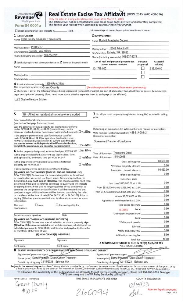 | 7 | 11/13/1989 | Warranty D | Warranty D | MOSES LAKE DEVELOP CORP | BARTLING, ANTHONY L/CATHY M | | | $0.00 | 198900000 | |
