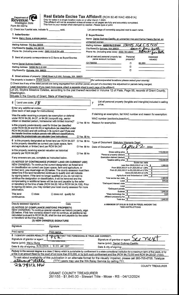 EPHRATA RURAL, | LOT 13 SKYLINE MEADOW ESTATES |