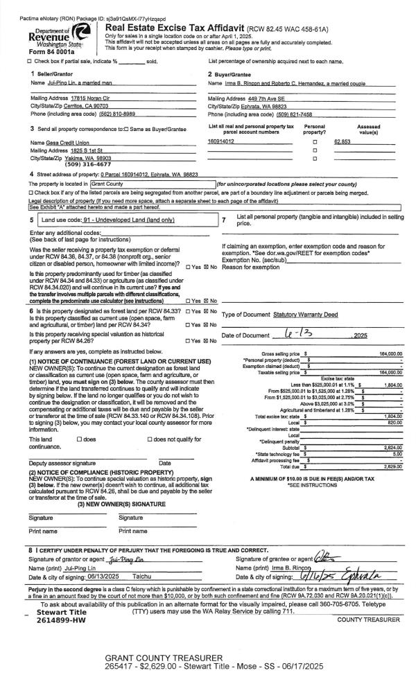 | 1 | 06/13/2025 | SWD | Statutory Warranty Deed | Lin, Jui-Ping | Rincon, Irma B & Roberto C Hernandez | | | $164,000.00 | 265417 | 1513295 |