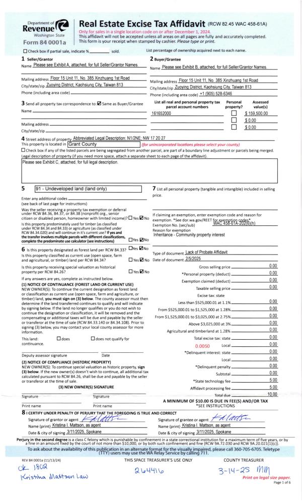 | 2 | 02/05/2025 | AFF OF HEI | Affidavit of Heirship | Hsu, Shih-Hsieh | Hsu, John Shih-Hsieh | | | $0.00 | 264416 | 1509803 |