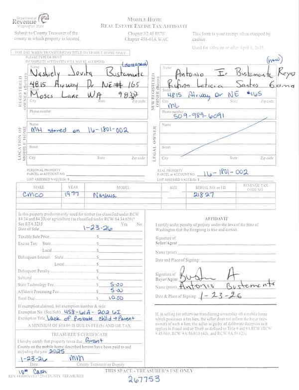 | 11 | 10/31/1989 | | | MOSES LAKE DEVELOP CORP | SMITH, GENEVA | | | $0.00 | 198900000 | V: 747 Pg 148 |
