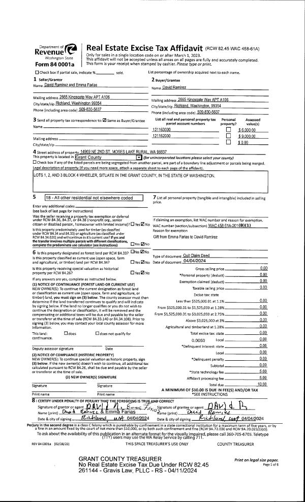 2 | 04/04/2024 | QCD | Quit Claim Deed | Ramirez, David & Farias, Emma | Ramirez, David | | | | 0 | 1497831 |