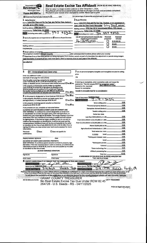 | 2 | 09/09/2014 | EASE | Easement | Chen Etal, Long-Chih & Pei F | PUD #2 of Grant County | | | $750.00 | 223984 | 1355105 |