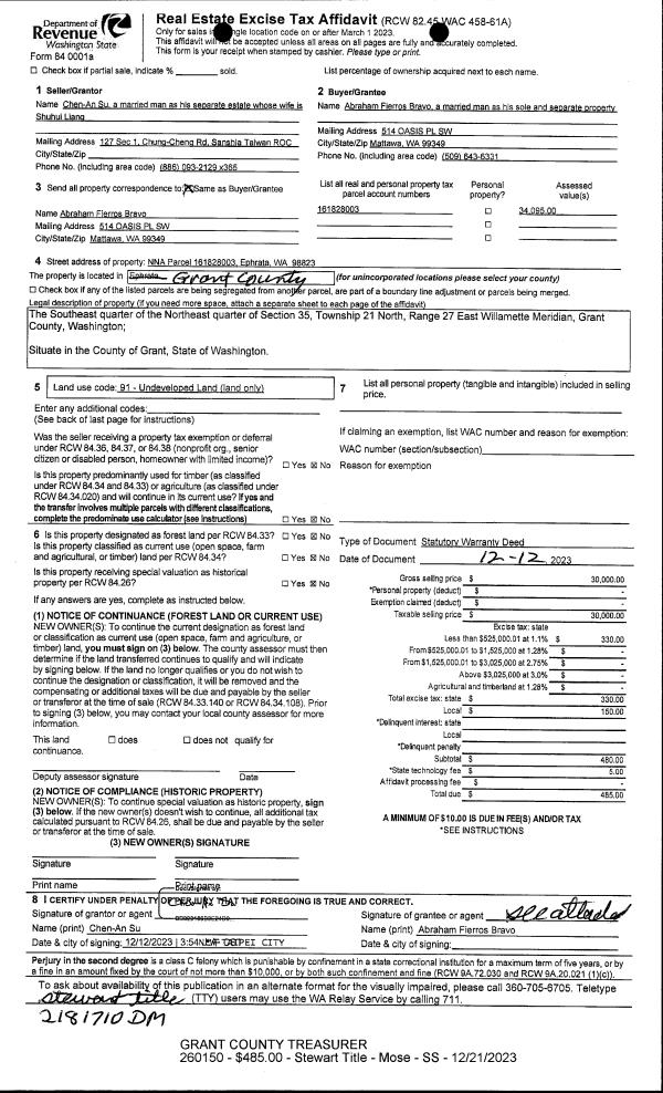 2 | 12/12/2023 | SWD | Statutory Warranty Deed | Su, Chen-An | Fierros Bravo, Abraham | | | $30,000.00 | 260150 | 1494216 |